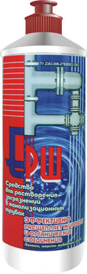 Средство для растворения загрязнений в канализационных трубах. Эффективно расщепляет жировые и органические соединения (волосы, шерсть животных и т.д.)