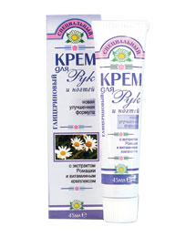 Специальный глицериновый крем для рук и ногтей с экстрактом ромашки и витаминным комплексом – превосходное средство для ухода за кожей рук и ногтей. Крем повышает эластичность увядающей кожи рук, оказывает ревитализирующее действие. Глицерин и витаминный комплекс поддерживают баланс кожи и уменьшают ломкость ногтей.