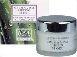 Лифтинг – крем для лица 24-часового действия Благодаря активному действию высококонцентрированных растительных ингредиентов (Алое-Вера, ретинол, полипептиды сои и пшеницы) крем способствует активизации процесса синтеза коллагена и эластина, стимулирует обновление клеток, тем самым, сокращая и разглаживая морщины. Растительные керамиды и аква- лифтинговые микросферы из морских водорослей способствуют нормализации гидратации. Крем восстанавливает гидро- липидный баланс, защищает обезвоженную кожу от вредного воздействия факторов окружающей среды (УФ- излучение), а так же оказывает видимый лифтинговый эффект. Применение крема в течение 2 недель сокращает количество и глубину морщин, возвращает коже упругость, эластичность, молодой и здоровый вид. Способ применения: крем рекомендуется наносить на очищенную кожу дважды в день (утром и вечером). Для достижения максимального эффекта, используйте крем в комплексе с лифтинг-сывороткой для лица (15 мл или 3 мл) и лифтинг маской для лица ALOE VERA PLANTERS. Основные ингредиенты: экстракты Алоэ Вера барбадосское, Алоэ древовидное, Алоэ китайское, Алоэ ферокс, экстракт рожкового дерева, ретинол (витамин А), растительные полипептиды сои и пшеницы, растительные керамиды, морские водоросли, УФ-фильтр. Объём: 50 мл