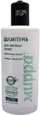 Мягкий, бодрящий шампунь для жирных волос с протеинами злаков, экстрактами пихты сибирской, прополиса, тысячелистника.
