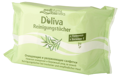 D’Oliva очищающие и увлажняющие салфетки с натуральным оливковым маслом экстра-класса первого холодного отжима из Тосканы, гелем алоэ, пантенолом и витамином Е подарят Вам мгновенное ощущение свежести и чистоты в любое время суток и в любом месте, великолепно справятся с удалением макияжа. Салфетки идеально подходят для сохранения свежести и чистоты кожи в течение всего дня, для удаления макияжа, удобны и практичны в использовании. После каждого применения упаковку рекомендуется тщательно закрывать.