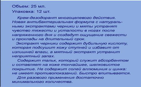 Крем для ног с дезодорирующий и охлаждающий Черника и Мята
