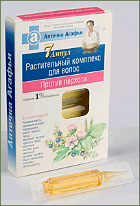 Масляный растительный комплекс в ампулах для волос против перхоти оказывает усиленное антисеборейное действие. Каждая ампула содержит сбалансированные активные вещества: соевое масло, масляный экстракт алтея, масляный экстракт шалфея, масло можжевельника, масло семян тыквы, масляный экстракт подорожника, репейное масло, масло черного перца, масляный экстракт красного перца, масло лимонника, климбазол, комплекс антиоксидантов. Климбазол (Climbazole ®) подавляет рост грибков, вызывающих образование перхоти, препятствует ее возникновению.