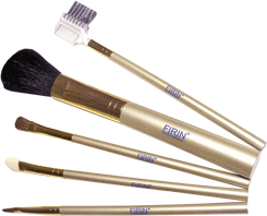 Набор для макияжа состоит из кисточек: для румян, помады, аппликатора для теней, щеточки-расчески для ресниц и бровей. Кисточки выполнены из натурального материала, мягкие и удобные в применении.