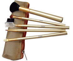 Набор для макияжа состоит из кисточек: для румян, помады, аппликатора для теней, щеточки-расчески для ресниц и бровей. Кисточки выполнены из натурального материала, мягкие и удобные в применении.