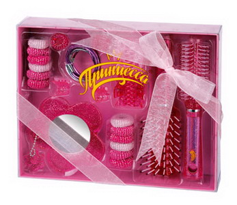 Набор содержит 2 расчески, а также множество резиночек, крабиков и зеркальце. Незаменимая для создания локонов и кудряшек "круглая" расческа также присутствует в наборе. Теперь сделать модную прическустанет еще легче. Перейти на страничку ассортимента