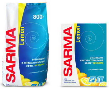 Порошок «САРМА ЛИМОН» предназначен для стирки белого и светлого белья из хлопчатобумажных и синтетических тканей, а также вещей из смешанных волокон. Особенно эффективен для стирки и отбеливания хлопчатобумажных и льняных тканей.