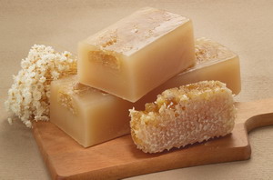 Медовое мыло мыло с приторным медовым ароматом. Смягчает, увлажняет и тонизирует кожу, замедляет старение кожи, помогает улучшить её эластичность, восстанавливает потраченную энергию. Медовое мыло с сотами и молочком особенно рекомендуется для сухой и чувствительной кожи.