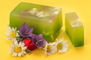 Мыло из полевых цветов мыло со свежим ароматом зелёной травы. Приятно тонизирует, освежает усталую кожу и улучшает настроение. Имеющийся в составе мыла крем отлично защитит сухую и чувствительную кожу. Подходит для всех типов кожи.