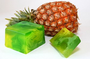 АНАНАСОВОЕ мыло Глицериновое мыло с оливковым маслом и сладким ароматом ананаса. Улучшает настроение, помогает концентрироваться и упраздняет депрессию. Имеет антибактериальные свойства. Подходит для всех типов кожи.