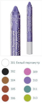 Отличается легкой кремовой текстурой, мерцающим блеском натурального шелка и богатым питательным комплексом, который сохраняет гладкость и эластичность кожи век. Естественный прозрачный макияж с влажным шелковым блеском сегодня очень актуален и легко создается при помощи кремообразных теней для глаз в карандаше. Преимущество таких продуктов перед сухими компактными тенями заключается в том, что они создают модный прозрачный макияж и позволяют подправить его в течение дня одним движением пальцев. Особенно это актуально для тех, кто постоянно сталкивается с проблемой скатывания теней в складочках век. Макияж глаз легко наносится, растушевывается и подправляется одним движением. Ультрасовременная форма теней «Кристальный блеск» в виде карандаша очень удобна и позволяет использовать этот продукт как тени и как контурный карандаш для глаз. Искрящийся эффект теней-карандаша «Кристальный блеск» сохраняется наиболее долго, если наносить этот продукт на внешний уголок глаза и на подбровную область кожи глаз. А на центральную часть подвижного века наносить классические компактные тени. Уникальный «стеклянный» пластик теней-карандаша точится обыкновенной точилкой! Визажисты рекомендуют новаторское решение - применение данного продукта как 3 в 1! Для глаз! Для щек! Для губ! Любой макияж губ будет более устойчивым, если созданный карандашом «Бархат» Art-Visage контур вокруг губ мягко растушевать и нанести помаду или блеск для губ. Такой макияж делает цвет губ более интенсивным, выразительным и идеально подходит для вечернего варианта.