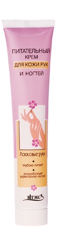 Особенно хорош для ухода за ногтями и сухой кожей рук, склонной к образованию трещин. Активные компоненты: кератин (белок, входящий в состав ногтей), коллаген, масло растительное.