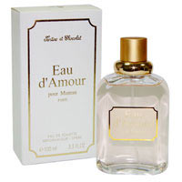 Название туалетной воды можно перевести как "Для мамы с любовью". Этот светлый воздушный безмятежный парфюм вызывает ассоциации с первой улыбкой младенца и нежными прикосновениями пухленьких ручек. Аромат открывается свежим и сильным цитрусовым аккордом мандарина и апельсина, убаюкивает сердце ароматом цветов розы и фиалки и остается в воздухе мягким древесным шлейфом мускуса и дерева "Гайак".