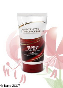 Пенка для кожи любого типа безукоризненно очищает от любых загрязнений и макияжа, не нарушая гидролипидную мантию кожи и не оставляя ощущения «стянутости». Биокомпоненты экстракта зеленого чая, природного антиоксиданта, нейтрализуют свободные радикалы, разрушающие коллагеновые волокна, укрепляют стенки мельчайших сосудов, активизируют обменные процессы и усиливают защитную реакцию кожи. Пенка витаминизирует эпидермис (В2, Р, С, К), тщательно очищает поры, увлажняет, тонизирует и смягчает кожу.