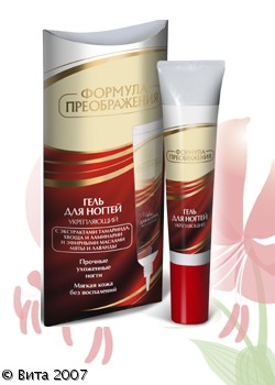 Укрепляет и улучшает структуру ногтевой пластины, повышает её эластичность и препятствует расслоению благодаря богатейшей палитре активных биокомпонентов лекарственных растений, лечебным свойствам эфирных масел лаванды и мяты. Удачно подобранная композиция останавливает воспалительные процессы и не дает развиться грибковым заболеваниям. Гель смягчает кожу вокруг ногтя и облегчает манипуляции с кутикулой.