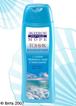 Тоник витаминизирующий с солями Мёртвого моря и липосомами для кожи лица и тела эффективно очищает, витаминизирует и разглаживает кожу, придает ей упругость и эластичность. Уникальный набор минералов Мёртвого моря регулирует осмотическое давление в клетке, поддерживает необходимый водный и кислотно—щелочной баланс в клетках кожи, способствует проникновению питательных веществ в клетку, замедляет процесс старения. Маленькие транспортные капсулы – липосомы, доставляют в глубинные слои кожи полезные вещества, витамин С и рутин - витамины-антиоксиданты, участвующие в синтезе коллагена, и опустевшими оболочками укрепляют межклеточное пространство, возвращая коже упругость. Провитамин В5 и аллантоин увлажняют, заживляют микротравмы и смягчают кожу.